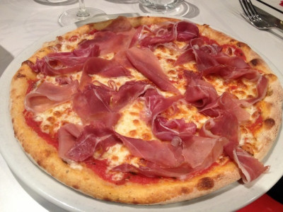 Tomato sauce, mozzarella, cured ham, oregano, fresh tomatoes, basil