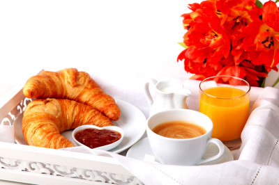 Une boisson chaude au choix accompagné de sa viennoiserie ou tartines et une orange fraîche pressée...
